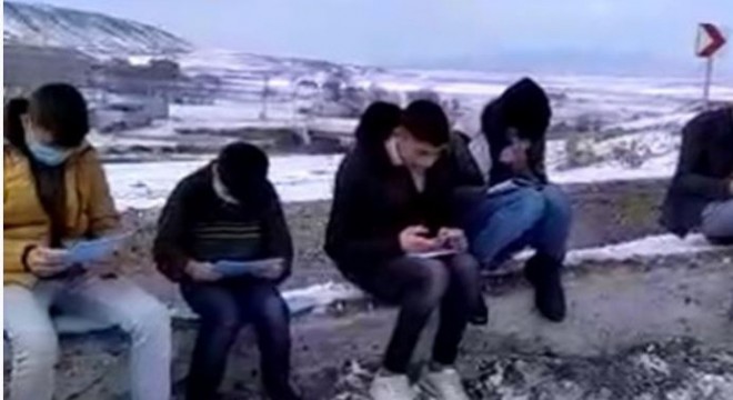 Ağcaşar Mahallesi'nde şebeke hatları sağlıklı çekmediği için öğrenciler, derslerini takip edebilmek için soğuk havada tepeye çıkıyorlar. Mahallede veliler de öğrencilere eşlik ederek onlara destek oluyorlar. Pandemi döneminde eğitimin uzaktan devam ettiğini belirten mahalle sakinleri, “Şebekelerimiz çekmiyor. Köyümüz çukur olduğu için öğrencilerimiz EBA derslerine ve canlı derslere katılamıyorlar. İnşallah sesimizi duyan olur ve en kısa zamanda baz istasyonu kurulur ve öğrencilerimiz sıcak evlerinde derslerini yapabilirler” dediler.