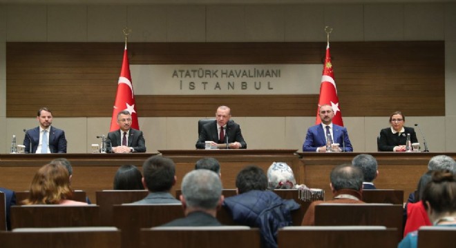 ABD tarafından açıklanan “yüzyılın anlaşması” planı ile ilgili soruları da yanıtlayan Cumhurbaşkanı Erdoğan, şunları kaydetti: “Bu planla ilgili biliyorsunuz gerek Cuma günü, gerek daha önce yaptığım açıklamalarda bunun bir işgal planı oldu, bunun bir barış planı olmadığını açıklamıştık. Ben bu yapılan açıklamadan öte buradan bizim çıkardığımız bazı başlıklar var ki önem arz ediyor. Bunlardan bir tanesi metinde Filistin tarafı şeklideki ifadelerin hepsi birer aldatmacadır. Metnin içerisinde mesela ‘Filistin tarafı Yahudi yerleşimlerinin İsrail sınırlarında kaldığını kabul etmeli’ diyor. Yüzyılın anlaşmasını kabul ettiği takdirde bağımsız Filistin devleti kurulması diyor ki bu da yalan. Hamas silahlarının toplanılarak Gazze’nin silahsızlandırılması diyor. Hamas silahlarını verecek İsrail’in silahları ne olacak, İsrail’in nükleer silahı ne olacak. Böyle bir şey olabilir mi. Bunların hepsi orada bir yerde topraklarında direniş mücadelesi veren insanlar. Ben de dün Hamas lideri ile İstanbul’da görüşmemi yaptım. Diğerleri PKK ile PYD ile Amerika’da Rusya’da her yerde görüşüyorlar, biz kendi topraklarının kurtuluşu için mücadele verenlerle görüşme yapmayacağız . Yaptığımız zaman beyler rahatsız olacak. Böyle şey olamaz. Yüzyılın anlaşması 80 sayfadan oluşuyor. ‘Birleşik Kudüs İsrail devletinin başkentidir.’ Böyle bir başlık da atmışlar. Yurt dışında yaşayan Filistinlileri dönüşü engelleniyor. En büyük felaket bu. Şu anda Filistin dışında ne kadar Filistinli varsa onar oraya gidemeyecekler. Bu rakam 5-6 milyon. Bir cinayet, bir felaket ayrıca var. Barış süreci için yol haritası hazırlanarak ortak komite oluşturulması. Bağımsız Filistin devletinde projeler için 50 milyar dolar temini yalan. Yıllarca bunu hepsini söylemişlerdir. Filistinlilerin hakları olanları vermemişlerdir. Toplanan vergilerden onlara verilmesi gereken paraları dahi vermemişlerdir. Gazze’nin elektriğini suyunu her şeyini kesmişlerdir. Zulmün sınırı olur mu. ‘İslam dünyasını İsrail’i devlet olarak tanıması’. Emir buyurdunuz efendim tabi yaparız. ‘Arap ülkeleri ile İsrail arasında ilişkilerin düzeltilmesi için çalışılması. Bunun cevabını her ne kadar sürpriz de olsa Arap Ligi toplantısında güzel bir cevap verdiler. Bu cevap için de biz Arap Liginin bu ferasetinin devamını temenni ederiz. Tablo şu anda bu durumda. Netenyahu’nun Trump ile yan yana yapmış olduğu basın toplantısı manidardır. Seçim kaybetmiş, geçici olarak işin başında bulunan bir kişi ile Trump’un bir araya gelmesi, orada 3 tane Arap ülkesi büyükelçisinin bulunarak alkış tutması zilletin bir ifadesidir.” Cumhurbaşkanı Erdoğan toplantı sonunda İdlib’de yürütülen operasyonlarda 06.15 itibariyle 46 rejim hedefinin 122 fırtına obüsü ve 100 havan mühimmatı ile vurulduğu bilgisini paylaştı.