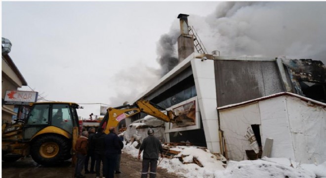 Erzurum’da Sanayi sitesinde çıkan yangına müdahale devam ederken içeride ...