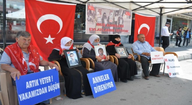Muş’ta çocuklarını terör örgütü PKK’nın pençesinden kurtarmak isteyen ailelerin DEM Parti il binası önündeki eylemi devam ediyor. Aileler, çocuklarının en kısa sürede güvenli bir şekilde evlerine dönmesini beklerken, toplumun da bu konuda destek olmasını istiyor. Çocuklarına kavuşma ümidiyle her hafta çarşamba günü DEM Parti il binası önünde bir araya gelen aileler, "Anneler direniyor" ve "Yeter artık evlatlarımızı bırakın" pankartları açtı. Anne ve babalar, yıllardır hasretle bekledikleri çocuklarına teslim olmaları için çağrıda bulundu.