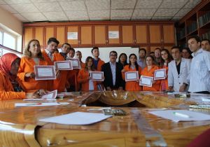 Kursu başarıyla tamamlayan kursiyerlere sertifikaları dağıtılarak Oltu taşı ürünler sergilendi.