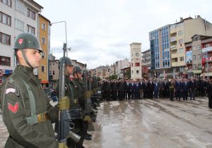 Törene, Oltu Kaymakamı Mehmet Gökhan Zengin, Oltu Belediye Başkanı İbrahim Ziyrek, Garnizon Komutanı Binbaşı İlhan Yıldız, Cumhuriyet Başsavcısı Gültekin Bülbül, kurum amir ve müdürleri ile vatandaşlar katıldı. Çelenk sunumunun ardından tören kıtası tarafından saygı duruşunda bulunuldu. İstiklal Marşı okunmasıyla tören son buldu.