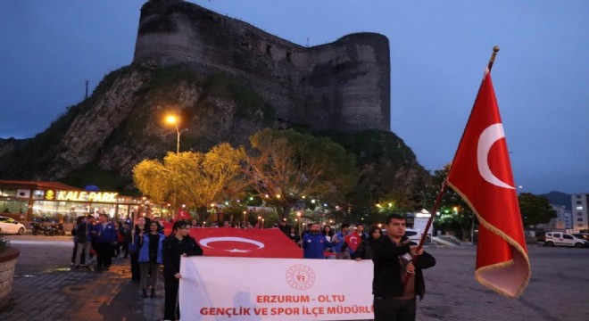 Oltu Gençlik Merkezi önünde toplanan gençler, Gazi Mustafa Kemal Atatürk’ün Samsun’a çıkarak yaktığı bağımsızlık meşalesini temsilen meşalelerini tutuşturarak yürüyüşe geçti. Bir ellerinde Türk bayrakları, diğer ellerinde meşalelerle "Ne Mutlu Türküm Diyene" sloganları eşliğinde Oltu Kale Meydanı’na kadar yürüyen gençler, vatandaşlardan da büyük ilgi gördü.