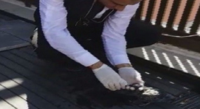 Erzurum’da çatıdan teras katına düşen ve gözleri görmeyen yavru güvercine otel çalışanları sahip çıktı.