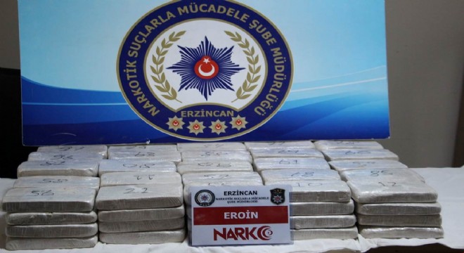 Erzincan'da, yol uygulama noktasında durdurulan otobüste yapılan aramada 51 kilo 193 gram eroin ele geçirildi.