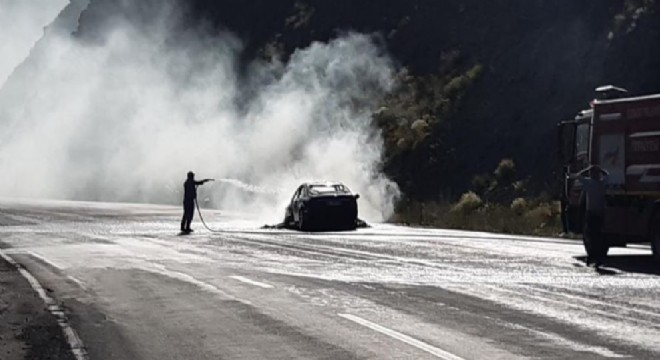 Bingöl’ün Karlıova ilçesinde seyir halindeyken alev alan otomobil küle döndü.