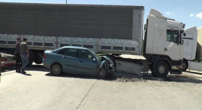 Otomobil tırın altına girdi