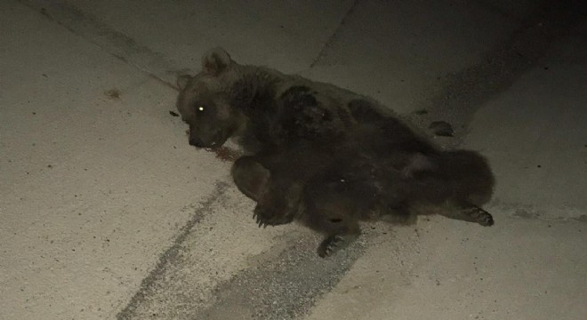 Horasan ilçesinde otomobilin çarptığı ayı telef oldu.