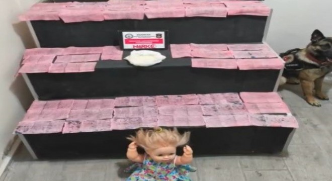 Erzincan’da durdurulan araçta narkotik köpeği destekli yapılan aramada oyuncak bebeğin içerisine saklanmış toplamda 49 bin 500 kullanımlık sentetik cannabinoid (bonzai) maddesi ele geçirildi.
