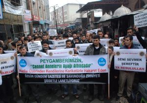 Mustazaflar Cemiyeti Ağrı Şubesi üyeleri, Merkez Camii önünde Özgür Gündem Gazetesi’nin yayınladığı karikatüre tepki gösterdiler. Erhan Güler'in okuduğu Kur’an-ı Kerim tilaveti ile başlayan basın açıklamasını Peygamber Sevdalıları Platformu Doğu ve Karadeniz Koordinatörlüğü yetkilisi Şaban Gökhan okudu. Özgür Gündem'in tavrının tüm Müslümanlara hakaret olduğuna dikkat çeken Gökhan, "Malum zihniyetin yayın organı olan Özgür Gündem Gazetesi de Çarşamba günkü sayısında, Peygamber Efendimizin ‘Cennet annelerin ayakları altındadır’ Hadis-i Şerifine gönderme yaparak, büyük bir terbiyesizlik etmiş ve milyarlarca Müslüman'ın Peygamberine hakaret ederek haddini aşmıştır. Özgür Gündem Gazetesi’nin Halil İncesu adlı karikatüristinin çizimiyle yapmış olduğu bu hakaretin, Fransa'da Charlie Hebdo Dergisi’nin Efendimize yaptığı hakaretten aşağı kalır hiçbir yanı yoktur. Zaten onlar ve diğer bazı zavallılar Fransa’ya giderek ‘Biz Charlie Hebdoyuz' diyenler değil miydi?" diye konuştu.