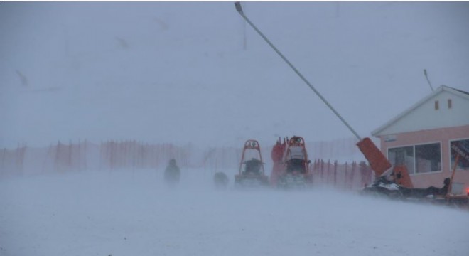 Saatte 45 kilometre hıza kadar ulaşan rüzgar sonrası görüş mesafesi düşerken pistlerden inmeye çalışan kayakseverler ayakta durmakta zorluk çekti.