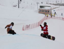 Palandöken Kayak Merkezi’nde düzenlenen ve 34 ülkeden yaklaşık yüz sporcunun katıldığı şampiyonaya katılan Dünyanın en iyi snowboardcuları yaptıkları gösterilerle izleyenleri adeta büyülemeye devam ediyor. Pazar ve Pazartesi günü yapılacak final müsabakalarının ardından sona erecek şampiyonaya katılan sporcular bugün yaptıkları antrenmanlarda yaptıkları akrobatik atlayışlarla izleyenlere heyecanlı dakikalar yaşattılar.