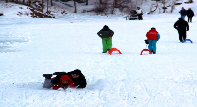 Dünyanın önemli kayak merkezleri arasında yer alan Palandöken'de yerli ve yabancı turistlerle çocuklar, kayak ve kızak keyfi yaparak gönüllerince eğlendi.