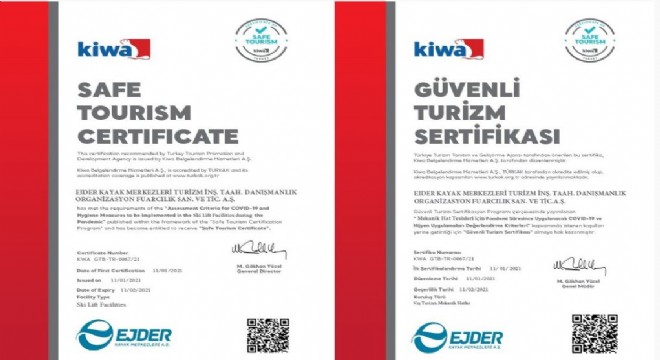 Salgının başladığı 11 Mart 2019’dan bu yana Korona virüsle mücadelede önemli adımlar atan Palandöken Kayak Merkezi, mekanik tesisleri için de ‘Güvenli Turizm Sertifikası’ aldı.