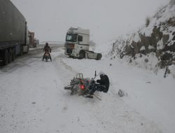 Öte yandan; motosikletle kaybettiği atlarını aramak için yola çıktığını anlatan vatandaşın, seyir esnasında kayarak düşmesi kameralara yansıdı.