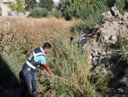 Toplanan hint kenevirleri ilçe çöplüğünde İlçe Tarım Müdürlüğü ve İlçe Emniyet Müdürlüğü