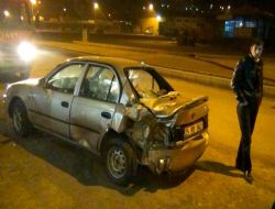 ERZURUM (İHA) - Erzurum'un Pasinler ilçesinde uygulama esnasında dur ihtarına uymayan araç hastane kavşağında kaza yaptı.