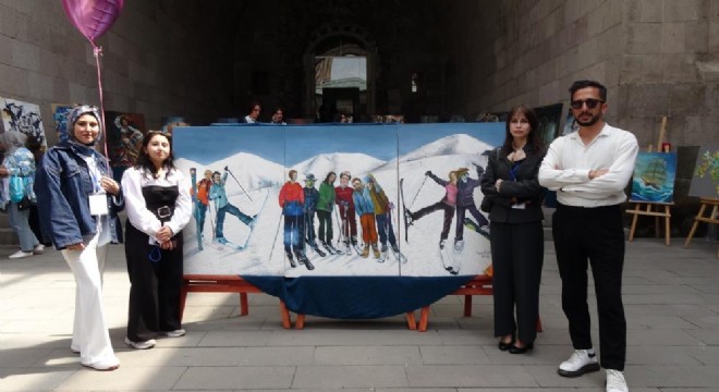 Erzurum Raci Alkır Güzel Sanatlar Lisesi resim bölümü öğrencileri, sanat ikonlarını Palandöken'de tatil yaptıkları halleriyle yağlı boya tabloya aktardı.