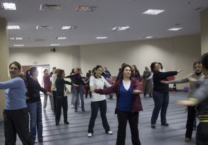 Erzurum Halk Sağlığı Müdürlüğü tarafından düzenlenen etkinlikler kapsamında, 3 bin kişilik Buz Hokeyi Antrenman Salonunda bayan antrenör eşliğinde ev hanımlarına ve bayan sağlık personeline yönelik spor etkinliği gerçekleştirildi.
