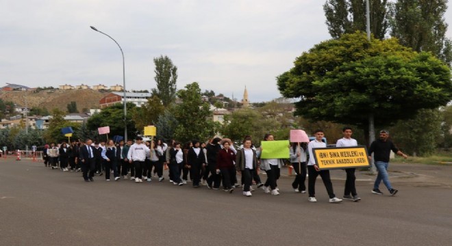 Oltu İbn-i Sina Mesleki ve Teknik Anadolu Lisesi öğrencileri, sağlıklı yaşamın önemine dikkat çekmek amacıyla bir yürüyüş düzenledi.