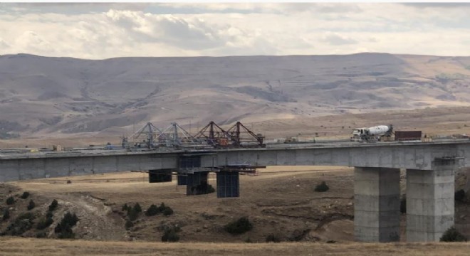 Sarıkamış-Horasan karayolunda bir taraftan asfalt serimi yapılırken, diğer taraftan viyadüklerde çalışmalar sürüyor.