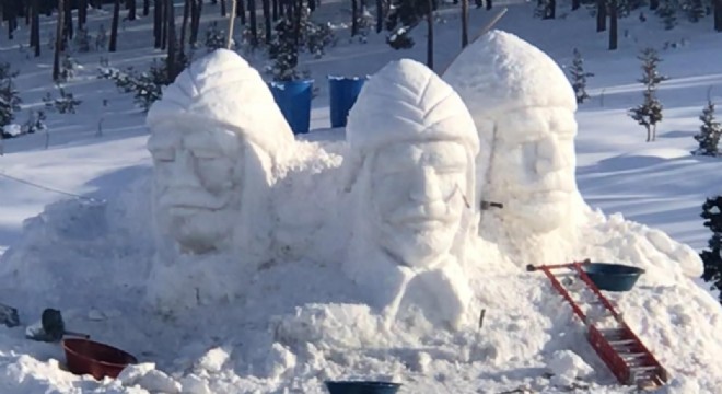 Şehit askerlerin portrelerinin yansıtılacağı heykeller için Sarıkamış Kayak Merkezinde yaklaşık 150 kamyon kar taşındı. Kar kütleleri, iş makineleriyle bir araya toplanarak heykeller yapılmaya başladı.