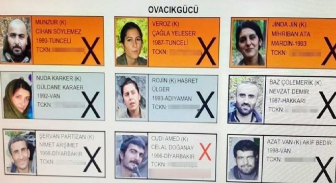 Operasyonda etkisiz hale getirilen teröristlerden ikisinin ise Tunceli kırsalında örgütün sözde kadın sorumlusu olarak faaliyet yürüten ve terörden arananlarda ‘turuncu’ kategoride yer alan Veroz kod adlı Çağla Yeleser ile Tunceli Hozat kırsalında sözde sorumlu düzeyde faaliyet yürüten ‘turuncu’ kategorideki Jinda Jin kod adlı Mihriban Ata olduğu tespit edildi. Etkisiz hale getirilen diğer teröristlerin Tunceli Hozat ve Ovacık kırsalında faaliyet yürüten ve terörden arananlarda 500 bin liraya kadar ödülle ‘gri’ kategoride yer alan Nuda Karker kod adlı Güldane Karaer, Rojin Adıyaman kod adlı Hasret Ülger olduğu belirlendi.
