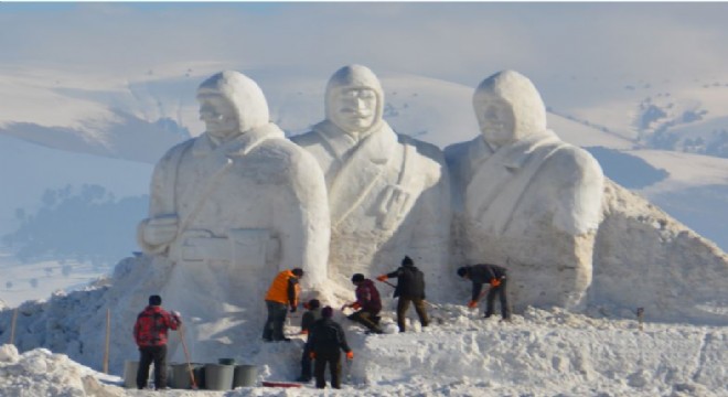8-9 Ocak'ta gerçekleştirilecek Sarıkamış Harekatı'nın 106. yılı anma etkinlikleri kapsamında sergilenecek kardan heykellerin yapımı devam ediyor.