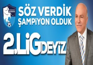 Büyükşehir Belediye Erzurumspor, Spor Toto 3. Lig’in şampiyonu oldu. Palandöken Kartalları deplasmanda Tire 1922 Spor’u 1 – 0 mağlup ederek 2. Lig’e yükseldi. B.B. Erzurumspor’un şampiyonluğu kentte büyük bir coşkuyla kutlandı. Erzurum Büyükşehir Belediye Başkanı Mehmet Sekmen, konuyla ilgili yaptığı değerlendirmede, “Erzurumspor, 2015-2016 futbol sezonunda yeşil sahada canla başla mücadele etti. Mavi Beyazlı futbolcuları, teknik ekibi, Kulüp Başkanı Ali Demirhan’ı, yönetim kurulu üyelerini ve bizleri hiçbir zaman yalnız bırakmayan taraftarlarımızı yürekten kutluyorum” dedi.