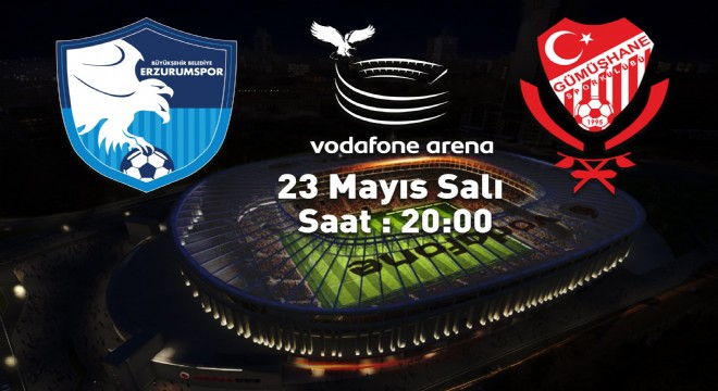 Büyükşehir Belediye Erzurumspor’un Gümüşhanespor ile oynayacağı Spor Toto 2. Lig’den TFF 1. Lig’e yükselme final maçının yeri ve tarihi belli oldu. Palandöken Kartalları Birinci Lig’e yükselme maçı için 23 Mayıs 2017 Salı günü saat:20.00’de İstanbul Vodafone Arena’da Gümüşhanespor ile karşılaşacak. Erzurum Büyükşehir Belediye Başkanı Mehmet Sekmen, konuyla ilgili yaptığı değerlendirmede, tüm taraftarları final maçına davet etti.