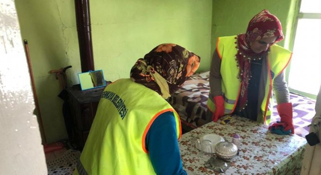Yaşlıların ve bakıma muhtaç kişilerin evlerinin temizlikleri Şenkaya Belediyesi ekipleri tarafından yapılıyor.