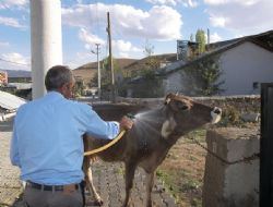 İlçe merkezinde artan hava sıcaklığı insanlar kadar hayvanları da olumsuz yönde etkiliyor. Otlatılmak için meraya gönderilen büyükbaş hayvanların meralarda hava sıcaklığından dolayı otlamadığı ilçeye geldiklerinde ise yorgun oldukları bu neden den dolayı da vatandaşlar gelen büyükbaş hayvanları ahır girişinde suyla yıkayarak serinletmeye çalışıyorlar. Otlamadan gelen büyük baş hayvanları ahır girişinde serinlemesi için yıkayan vatandaşlar, "Havalar ısındı yağmur yağmadı otlak yok meradan gelen hayvanların da serinlemesi için bizler de böyle çözüm ürettik” dediler.
