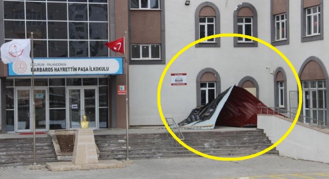 Erzurum’da sabah saatlerinde yüksek kesimlerde etkili olan kar fırtınası şehir merkezinde ise şiddetli fırtına olarak devam etti. Saatte 50 kilometre hıza ulaşan fırtınada Palandöken ilçesinde yer alan Barbaros Hayrettin Paşa İlkokulunun çatısı savurularak okul bahçesine devrildi. O sırada öğrencilerin derste olması faciayı önledi.