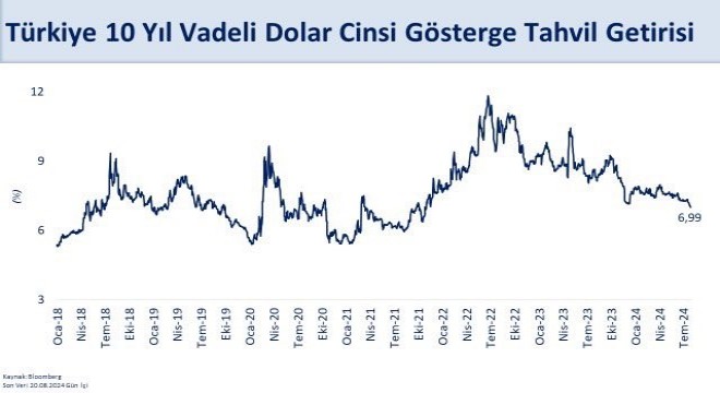 Hazine ve Maliye Bakanı Mehmet Şimşek, “10 yıl vadeli ABD Doları gösterge tahvilimizin getirisi 2021 yılı Kasım ayından sonra ilk defa yüzde 7’nin altına indi” dedi.