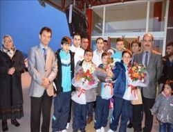 Erzurumlu karateciler için dün akşam Erzurum Havalimanı’nda karşılama töreni düzenlendi. Karatecileri karşılamaya Erzurum Gençlik Hizmetleri ve Spor İl Müdürü Vekili Şinasi Polat, Palandöken İlçe Müdürü Köksal Kaçmaz, Karate Antrenörü Muhammet Çelebi ve çok sayıda spor sever ile sporcuların aileleri katıldı. Balkan ikincisi olan karate takımının sporcularına çiçek sunan GHSİM İl Müdürü Vekili Şinasi Polat, “14 ülkeden yüzlerce sporcunun arasından sıyrılarak ülkemize ve ilimize kata da gümüş kupa ve madalya kazandıran karatecilerimizi tebrik ediyorum. Karate Bölge Başkanı Ahmet Çelebi ve birlikte görev yaptığı tüm antrenörleri kutluyorum. İnşallah bu sporcu arkadaşlarımız ileriki yıllarda bizlere daha büyük sevinçler yaşatacak” şeklinde konuştu. Palandöken Gençlik Hizmetleri ve Spor İlçe Müdürü Köksal Kaçmaz ise yaptığı açıklamada, “İlçemizde faaliyet gösteren Çelebispor Kulübü’nün karatecilerinin ülkemiz ve ilimiz adına büyük başarı elde etmesi bizleri gururlandırmıştır. Emeği geçen herkese teşekkür ediyorum” dedi. Bu arada Uluslar arası hakem olan ve altı tatamide yapılan maçlarda 100 dolayında müsabakada görev yapan Resul Çelebi de gerek Karate Federasyonu’nda gerekse memleketi Erzurum’da takdirle karşılandı. Dün coşkulu bir şekilde karşılanan karateciler daha sonra konvoyla şehir turu attıktan sonra Yenişehir’deki Çelebispor kulübüne geçtiler. Erzurum’a Balkan İkinciliği kazandıran Kata takımı, bundan sonra hedeflerinin Avrupa şampiyonluğu olduğunu söyledi.