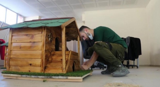 Uzundere ilçesinde gönüllü gençler ve esnaf tarafından soğuk havalarda dışarıda kalan sokak hayvanlarına ahşaptan ev yapıldı.