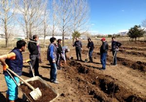 ERZURUM (İHA) - Atatürk Üniversitesi Su Ürünleri Fakültesi öğrencilere 300 adet meyve fidanını toprakla buluşturdu.
