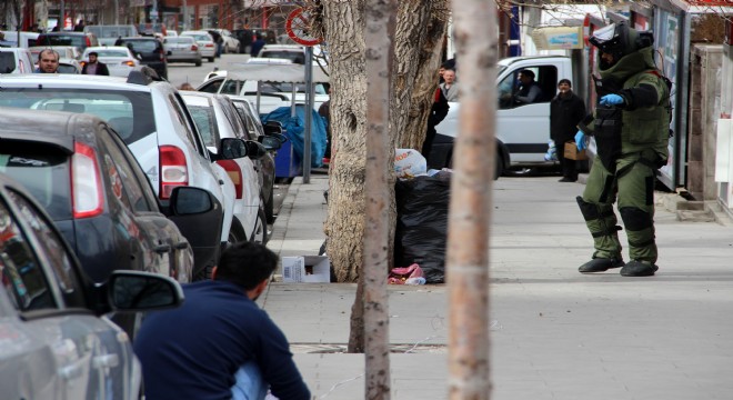 Erzurum’da duvar üzerine bırakılan şüpheli çanta, uzman ekipler tarafından fünye ile patlatılarak imha edildi.