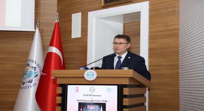 Alanya Kaymakamlığı ve Alanya Alaaddin Keykubat Üniversitesi (ALKÜ) iş birliğiyle düzenlenen “Türk Dil Kurumu ve Türk Dünyasında Ortak Alfabe” konulu konferansta Türk Dil Kurumu (TDK) Başkanı Prof. Dr. Osman Mert, ortak alfabeyi anlattı.
