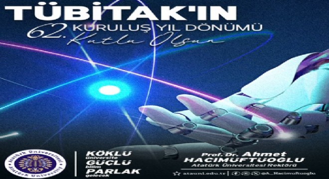 Atatürk Üniversitesi Rektörü Prof. Dr. Ahmet Hacımüftüoğlu TÜBİTAK’ın 62’inci kuruluş yıldönümü dolayısıyla kutlama mesajı yayımladı.