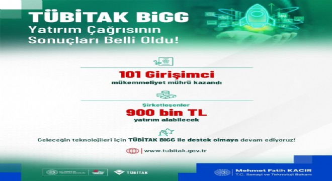 TÜBİTAK tarafından düzenlenen BİGG programı kapsamında, 2012 yılından beri yaklaşık 3 bin girişimci, şirketlerini kurarak iş fikirlerini hayata geçirdi. Sanayi ve Teknoloji Bakanı Mehmet Fatih Kacır sosyal medya hesabından yaptığı açıklamada, 1’inci çağrı sonuçlarının açıklandığını belirtti. Kacır, 2 bin 31 genç girişimcinin, TÜBİTAK BİGG Programı’na iş fikriyle başvurduğunu söyleyerek, "101 girişimcimiz, yenilikçi projeleriyle Mükemmeliyet Mührü almaya hak kazandı. Şirketleşen girişimcilerimiz yüzde 3 hisse karşılığında 900 bin lira yatırım alabilecek. Gençlerin hayallerine sermaye, projelerine ortak oluyoruz. Girişimcilerimizi desteklemeye devam edeceğiz" ifadelerine yer verdi.
