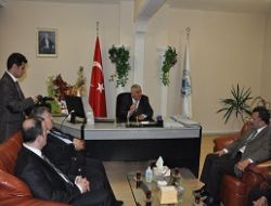 Tüm Sanayici ve İşadamları Derneği (TÜMSİAD) Erzurum Şube Başkanı Cafer Burucu ve yönetim kurulu üyeleri Erzurum Ticaret Borsası Yönetim Kurulu Başkanı İ. Hakkı Hınıslıoğlu’nu ziyaret etti.