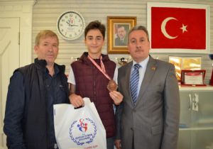 Erzurum Gençlik Hizmetleri ve Spor İl Müdürü Fuat Taşkesenligil, Türkiye üçüncüsü taekwondocusu Ahmet Vefa Bumin’i tebrik etti.