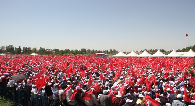 Güçlü devlet olmanın kolay olmadığını dile getiren Erdoğan, "Değerli kardeşlerim; büyük devlet olmak, güçlü devlet olmak kolay değil. Bunun için vatanımıza yönelik saldırılarla da mücadele edeceğiz, yatırım da yapacağız. Yatırım yapmak suretiyle, istihdam etmek suretiyle kalkınabiliriz. Medeniyet iddiamız var ve bunu başaracağız. Bunu taş üstüne taş koymayanlar değil, taş üstüne taş koyanlar yapabilir. Bunun yolu çalışmaktan geçer. Eğer siz kendiniz için çalışmazsanız birileri sizi kendisi için çalıştırır. Bu millete eğilmek yok" şeklinde konuştu.
