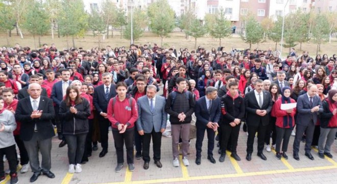 Milli Eğitim Bakanı Yusuf Tekin, Erzurum Türk Telekom Nurettin Topçu Sosyal Bilimler Lisesi öğrencileri ile birlikte Filistin şehitleri için okul bahçesinde 1 dakika saygı duruşunda bulundu.