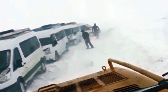 Tekman ilçesi Çağlar Mahallesi'ndeki ilk ve ortaokula taşımalı gelen 6 köyün öğrencileri yoğun kar yağışı ve tipi yüzünden yolda mahsur kaldı. Şoförlerin ihbarı üzerine olay yerine gelen Büyükşehir Belediyesine bağlı ekipler iş makineleriyle yolları açtı.