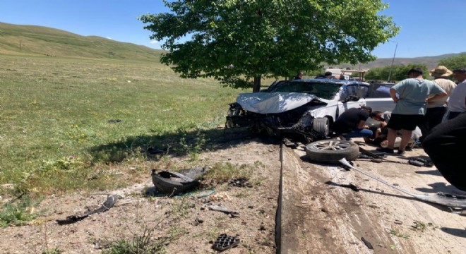 Erzincan-Erzurum kara yolunda iki otomobilin çarpışması sonucu meydana ...
