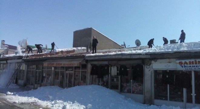 Tekman ilçesinde belediye ekiplerince çatılarda biriken kar yığınları temizlendi.