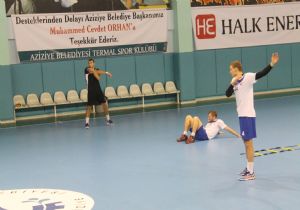 Ilıca Aziziye Spor Salonu'nda gerçekleştirilen antrenman saat 17.00'da başladı. Antrenör Ali Erzurumluoğlu öncülüğünde gerçekleştirilen antrenman yaklaşık 2 saat sürdü. Bacak ve kol açma ve germeleriyle başlayan antrenman tam sahaya yayılan jenerasyon çalışmalarıyla devam etti.