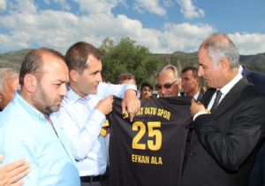 Oltu ilçe merkezine girişte çevre yolu kavşağında kalabalık tarafından karşılanan Bakan Efkan Ala, uzun bir araç konvoyu ile ilçe merkezine geldi. Konvoyu karşılayan minik bir kız Bakan Ala'ya çiçek sunarken, Oltu 25 Martspor Başkanı ve aynı zamanda Belediye Meclis Üyesi Ahmet Zengin Bakan Ala'ya Oltu 25 Martspor'un formasını hediye etti.